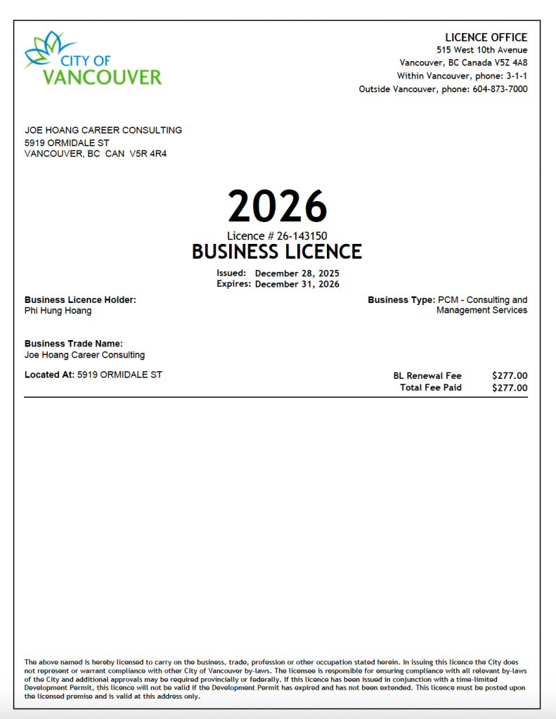 After establishing my career in Canada, I founded Joe Hoang Career Consulting to support international students and newcomer professionals who are navigating the Canadian job market.